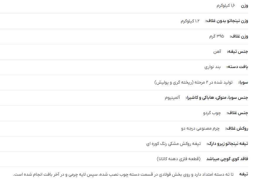 درود، این مدل بیشتر مناسب تمرین کاتا و حرکات نمایشی میباشد و تیزی بسیار کمی دارد