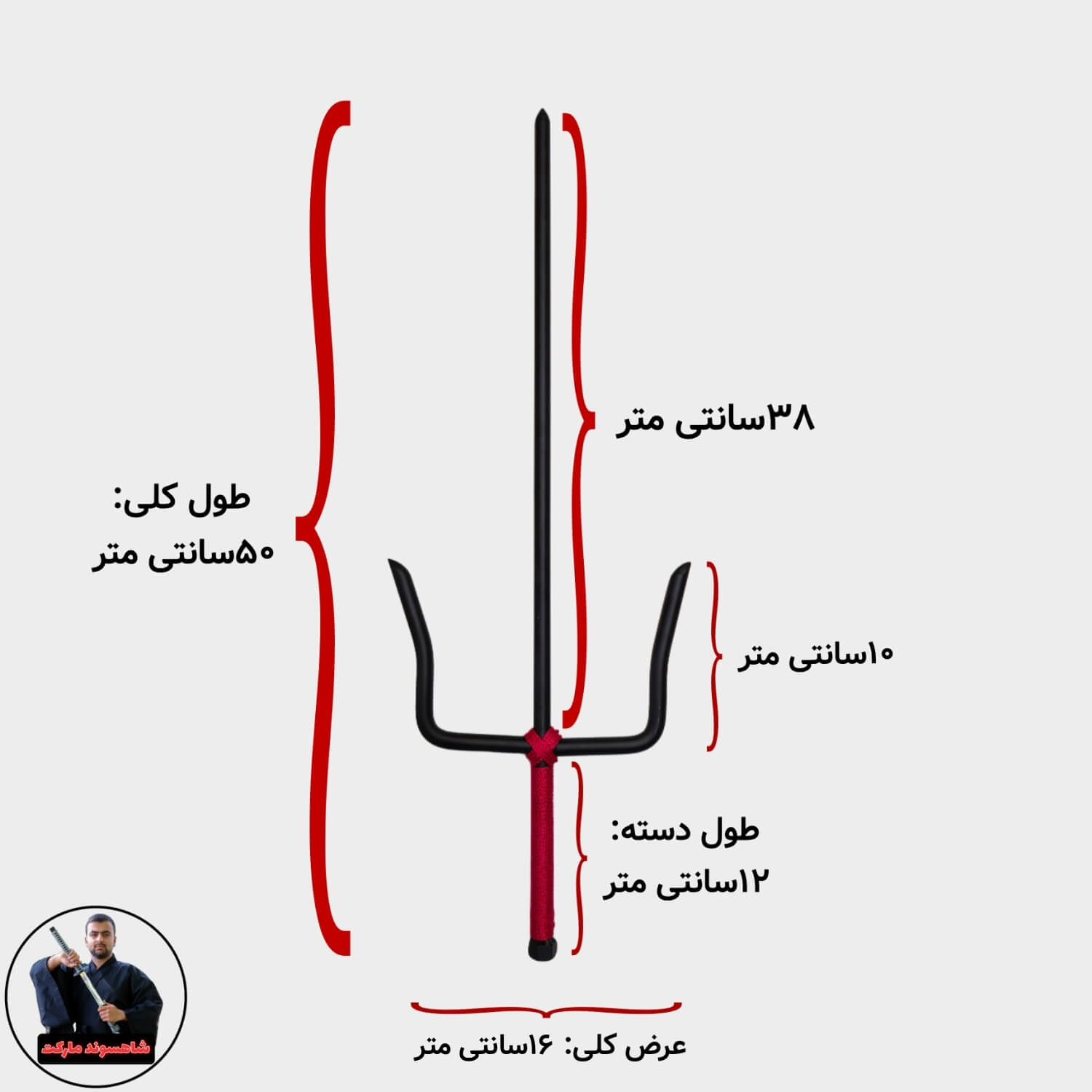 این اسلحه دسته کوتاه را می توان همانطور که هست استفاده کرد یا یک چوب به آن وصل کرد و نیزه سه سر به وجود آورد.